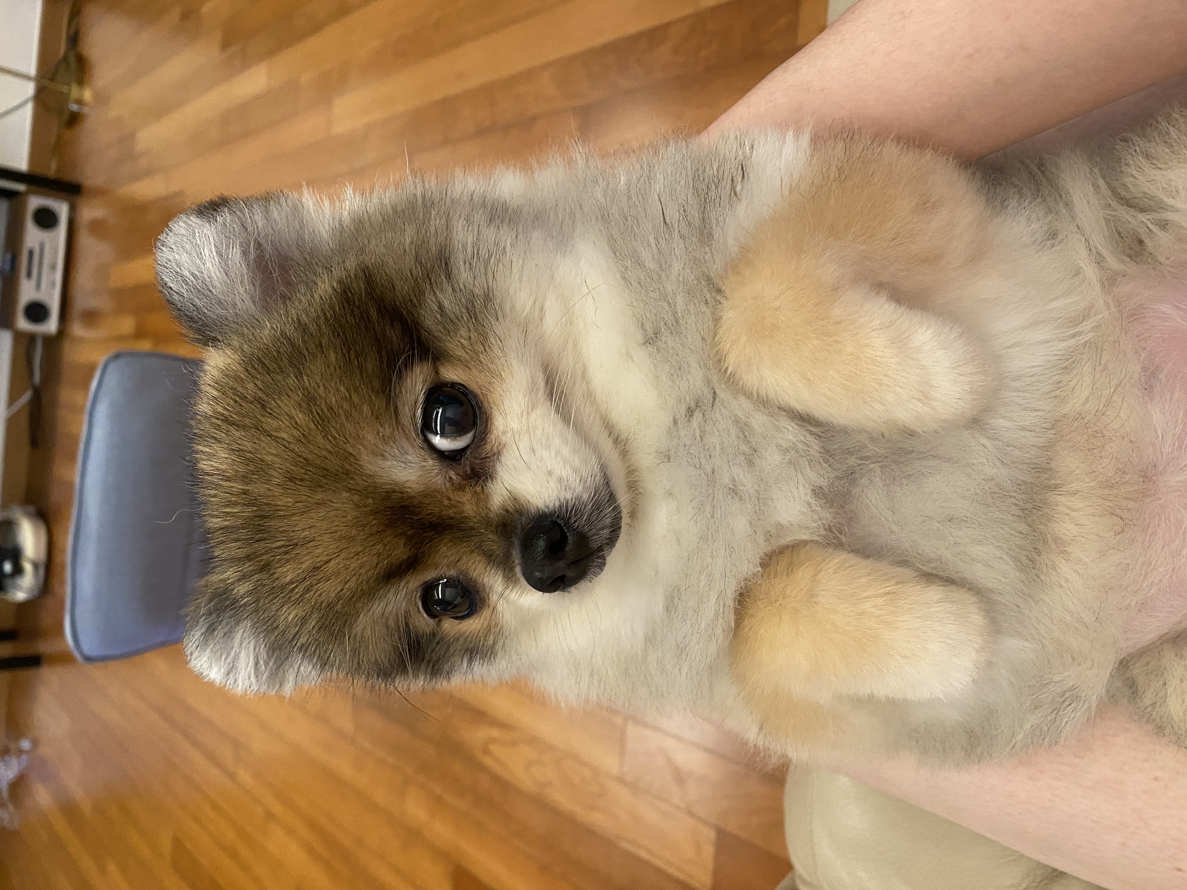 I have my lovely dawg in my house. Her species is pomeranian. She's very quiet and calm.